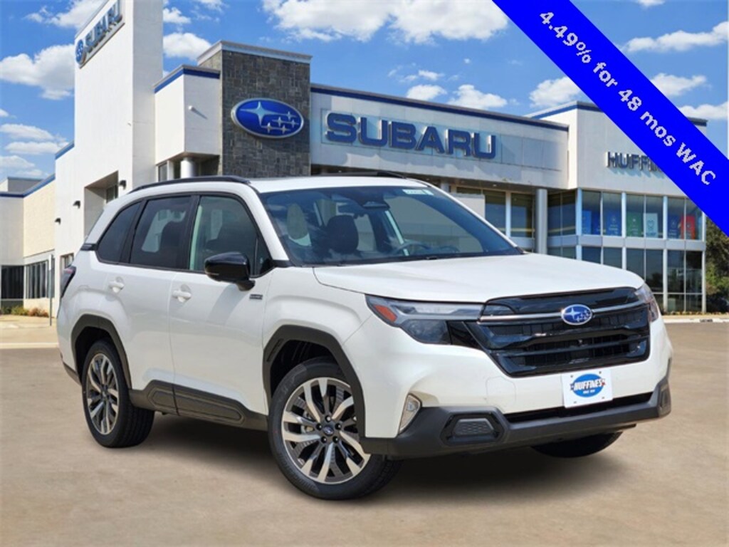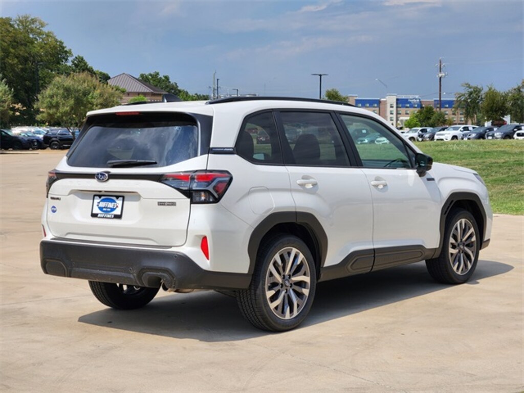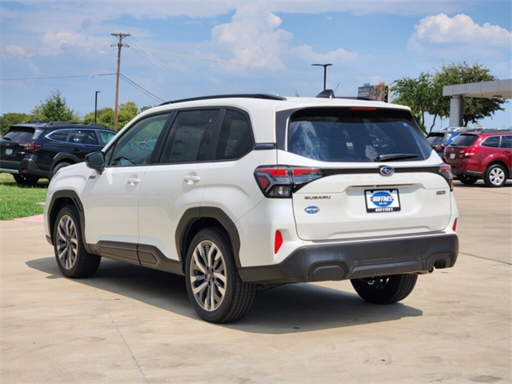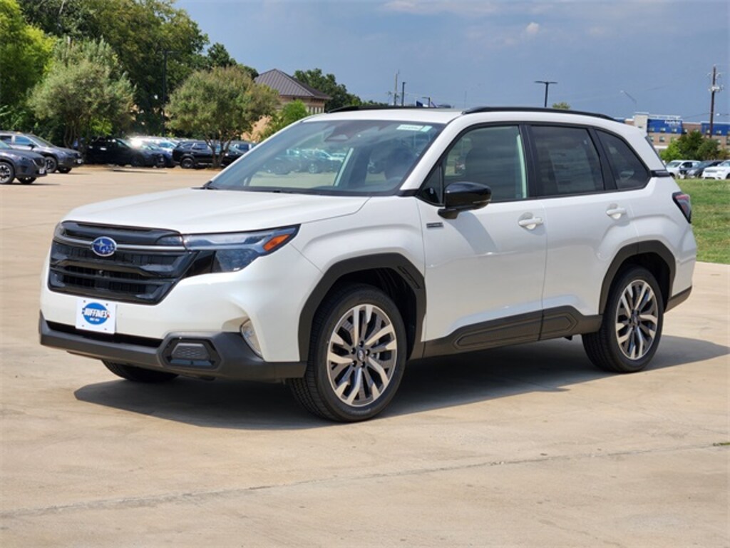 Crystal White Pearl 2025 Subaru Forester Hybrid Touring AWD Lineartronic CVT 2.5L 4-Cylinder DOHC 16V 2.5L 4-Cylinder DOHC 16V, All-Weather Floor Liners, Cargo Tray, Center Console Tray, First Aid Kit, Footwell Illumination Kit, LED Upgrade, Rear Bumper Cover, Rear Seatback Protector, Side Sill Plates - Front, Sunshade - 2nd Row, Wheel Locks - Alloy.
