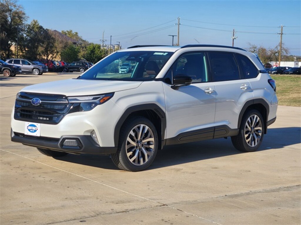 Crystal White Pearl 2026 Subaru Forester Touring AWD Lineartronic CVT 2.5L 4-Cylinder DOHC 16V Auto-Dimming Exterior Mirror w/Approach Light, Center Console Tray, Footwell Illumination Kit, LED Upgrade, Splash Guards, Utility Hook (2-Pack).