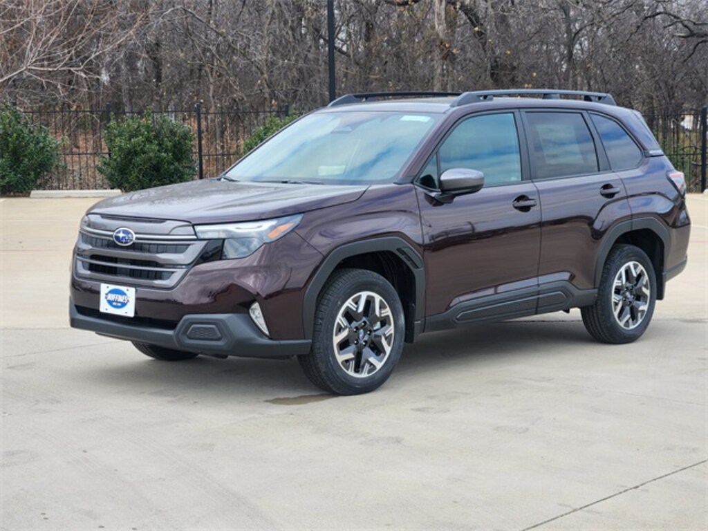 Dark Mahogany Pearl 2026 Subaru Forester Premium AWD Lineartronic CVT 2.5L 4-Cylinder DOHC 16V Automatic Emergency Steering, Blind-Spot Detection (BSD)/RCTA System, Cargo Net, Cargo Tray, Emergency Lane Keep Assist, Power Rear Gate, Power Rear Gate and Blind Spot Detection with Rear Cross Traffic Alert, Splash Guards, USB Charging Cable Set.