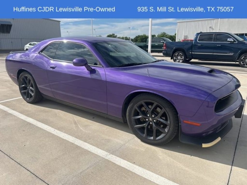 This stunning 2023 Dodge Challenger GT in the eye-catching Plum Crazy color is a true head-turner. With its powerful 3.6L V6 engine paired with an 8-speed automatic transmission, this Challenger delivers an exhilarating driving experience. The Blacktop Package adds a touch of sportiness with its black exterior accents, including a black grille, black fuel filler door, and black Challenger badging.