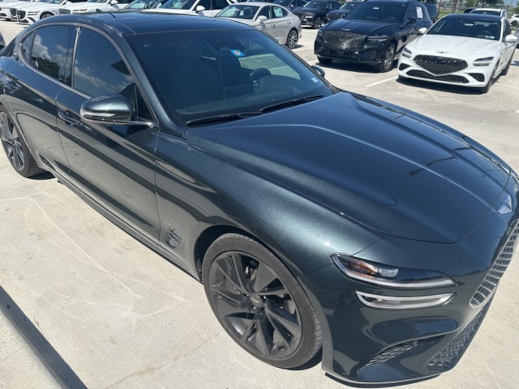Green 2023 Genesis G70 2.0T RWD 8-Speed Automatic with SHIFTRONIC I4 **SUNROOF**, **RECENT OIL CHANGE**, **REAR BACKUP CAMERA**, **PUSH BUTTON START**, **NAVIGATION**, **LOCAL TRADE**, **LEATHER INTERIOR**, **KEYLESS ENTRY**, **GENESIS FACTORY CERTIFIED AT NO ADDITIONAL CHARGE**, **HEATED STEERING WHEEL**, **HEATED SEATS**, **FRESH DETAIL**, **CLEAN CARFAX**, **CARFAX ONE OWNER**, **BLUETOOTH WIRELESS PHONE CONNECTIVITY**. BETTER WARRANTY THAN A NEW ONE!!!