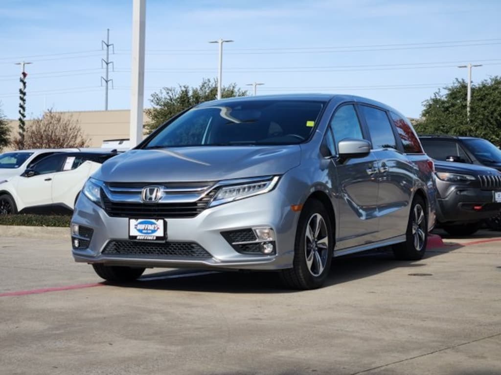 Lunar Silver Metallic 2019 Honda Odyssey Touring 3.5L V6 SOHC i-VTEC 24V FWD 10-Speed Automatic **CLEAN CARFAX**, **LOCAL TRADE**, **NAVIGATION**, **MOONROOF**, **KEYLESS ENTRY**, **LEATHER INTERIOR**, **REARVIEW CAMERA**, **BLUETOOTH / HANDS FREE CALLING**, **HEATED SEATS**, **APPLE CARPLAY AND ANDROID AUTO**, **POWER LIFTGATE**, **LOADED!!**, **REAR ENTERTAINMENT**, 18" Machine-Finished Alloy Wheels, 3rd row seats: split-bench, ABS brakes, Apple CarPlay/Android Auto, Blind Spot Information (BSI) System warning, Forward collision: Collision Mitigation Braking System (CMBS) + FCW mitigation, Front anti-roll bar, Front fog lights, Heated door mirrors, Heated front seats, Knee airbag, Lane departure: Lane Keeping Assist System (LKAS) active, Leather Seat Trim, Memory seat, Navigation System, Overhead airbag, Power driver seat, Power Liftgate, Power moonroof, Radio: 160-Watt AM/FM/HD/SiriusXM Audio System, Rear air conditioning, Remote keyless entry, Security system, Steering wheel mounted audio controls.