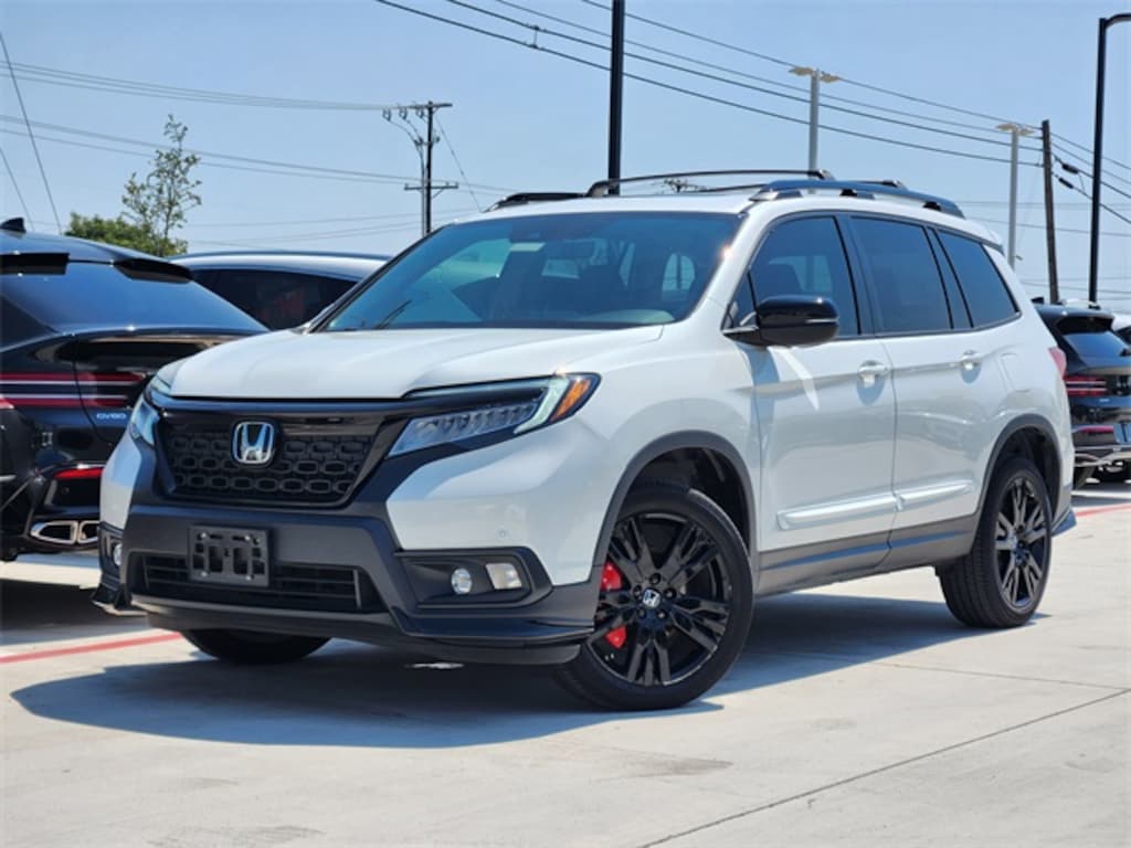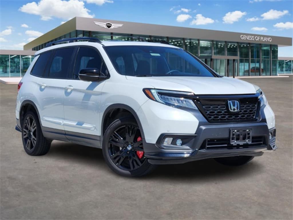 White 2021 Honda Passport Touring AWD 9-Speed Automatic 3.5L V6 24V SOHC i-VTEC **SUNROOF**, **RECENT OIL CHANGE**, **REAR BACKUP CAMERA**, **PUSH BUTTON START**, **LOCAL TRADE**, **LEATHER INTERIOR**, **KEYLESS ENTRY**, **HEATED SEATS**, **FRESH DETAIL**, **BLUETOOTH WIRELESS PHONE CONNECTIVITY**, 10 Speakers, 4-Wheel Disc Brakes, 4.334 Axle Ratio, A/V remote: CabinControl, ABS brakes, Air Conditioning, Alloy wheels, AM/FM radio: SiriusXM, Apple CarPlay/Android Auto, Auto High-beam Headlights, Auto-dimming Rear-View mirror, Automatic temperature control, Blind Spot Information (BSI) System warning, Brake assist, Bumpers: body-color, Compass, Delay-off headlights, Driver door bin, Driver vanity mirror, Driver's Seat Mounted Armrest, Dual front impact airbags, Dual front side impact airbags, Electronic Stability Control, Emergency communication system: HondaLink, Exterior Parking Camera Rear, Forward collision: Collision Mitigation Braking System (CMBS) + FCW mitigation, Four wheel independent suspension, Front anti-roll bar, Front Bucket Seats, Front Center Armrest, Front dual zone A/C, Front fog lights, Front reading lights, Fully automatic headlights, Garage door transmitter: HomeLink, Heated door mirrors, Heated Front Bucket Seats, Heated front seats, Heated rear seats, Illuminated entry, Lane departure: Lane Keeping Assist System (LKAS) active, Leather-Trimmed Seats, Low tire pressure warning, Memory seat, Navigation system: Honda Satellite-Linked Navigation System, Occupant sensing airbag, Outside temperature display, Overhead airbag, Overhead console, Panic alarm, Passenger door bin, Passenger seat mounted armrest, Passenger vanity mirror, Power door mirrors, Power driver seat, Power Liftgate, Power moonroof, Power passenger seat, Power steering, Power windows, Radio data system, Radio: 540-Watt Premium Audio System w/10 Speakers, Rear air conditioning, Rear anti-roll bar, Rear reading lights, Rear seat center armrest, Rear window defroster, Rear window wiper, Remote keyless entry, Roof rack: rails only, Security system, Speed control, Speed-sensing steering, Split folding rear seat, Spoiler, Steering wheel mounted audio controls, Tachometer, Telescoping steering wheel, Tilt steering wheel, Traction control, Trip computer, Turn signal indicator mirrors, Variably intermittent wipers, Wheels: 20" Solid-Spoke Pewter Gray Alloy.