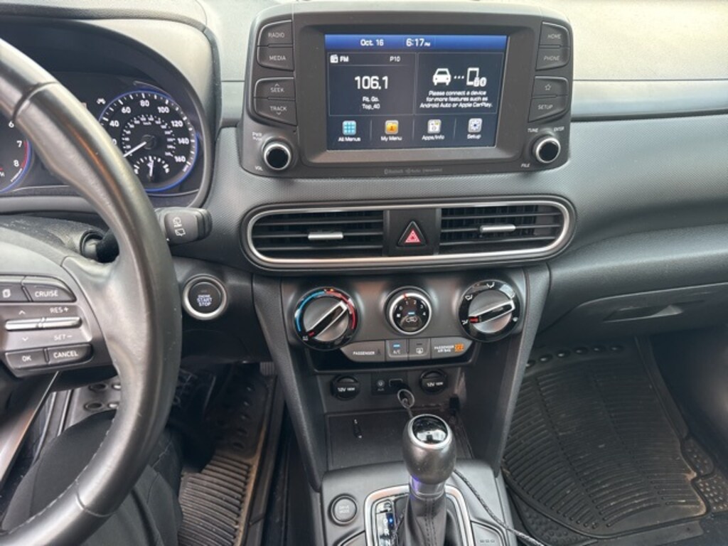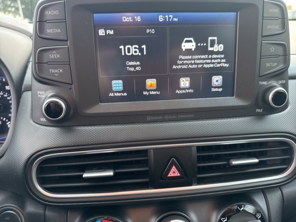 Thunder Gray 2018 Hyundai Kona SEL TECH. I4 FWD 6-Speed Automatic **CARFAX ONE OWNER**, **LOCAL TRADE**, **MOONROOF**, **KEYLESS ENTRY**, **REARVIEW CAMERA**, **BLUETOOTH / HANDS FREE CALLING**, **HEATED SEATS**, **APPLE CARPLAY AND ANDROID AUTO**, 17" x 7.0" Alloy Wheels, 8-Way Power Driver Seat, ABS brakes, Apple CarPlay & Android Auto, Exterior Parking Camera Rear, Fog Lights, Front & Rear LED Maplights, Front anti-roll bar, Heated Front Bucket Seats, Heated front seats, Lane Keeping Assist, Leather Shift Knob, Leather steering wheel, Occupant sensing airbag, Option Group 02, Overhead airbag, Power Tilt & Slide Sunroof, Radio: AM/FM/HD Radio/SiriusXM Audio System, Security system, SEL Tech Package 02, Steering wheel mounted audio controls.