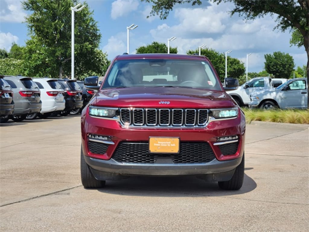 CARFAX One-Owner. Velvet Red Pearlcoat 2023 Jeep Grand Cherokee 4xe 4xe 8-Speed Automatic 2.0L I4 DOHC 4WD Quick Order Package 27F, 2.0L I4 DOHC, 4WD, 10 Speakers, 3.70 Rear Axle Ratio, 4-Wheel Disc Brakes, ABS brakes, Air Conditioning, Alloy wheels, AM/FM radio: SiriusXM with 360L, Anti-whiplash front head restraints, Audio memory, Auto High-beam Headlights, Automatic temperature control, Brake assist, Bumpers: body-color, Capri Leatherette Seats, Compass, Delay-off headlights, Driver door bin, Driver vanity mirror, Dual front impact airbags, Dual front side impact airbags, Electronic Stability Control, Four wheel independent suspension, Front anti-roll bar, Front Bucket Seats, Front Center Armrest w/Storage, Front dual zone A/C, Front fog lights, Front License Plate Bracket, Front reading lights, Fully automatic headlights, Garage door transmitter, Heated door mirrors, Heated front seats, Heated rear seats, Heated steering wheel, Heavy Duty Suspension, Illuminated entry, Knee airbag, Low tire pressure warning, Memory seat, Navigation System, Occupant sensing airbag, Outside temperature display, Overhead airbag, Overhead console, Panic alarm, ParkView Rear Back-Up Camera, Passenger door bin, Passenger vanity mirror, Power door mirrors, Power driver seat, Power Liftgate, Power moonroof, Power passenger seat, Power steering, Power windows, Radio data system, Radio: Uconnect 5 Nav w/10.1" Display, Rear anti-roll bar, Rear reading lights, Rear window defroster, Rear window wiper, Remote keyless entry, Security system, Speed control, Speed-Sensitive Wipers, Split folding rear seat, Spoiler, Steering wheel mounted audio controls, Tachometer, Telescoping steering wheel, Tilt steering wheel, Traction control, Trip computer, Turn signal indicator mirrors, Variably intermittent wipers, Voltmeter, and Wheels: 18" x 8" Fully Painted Aluminum.