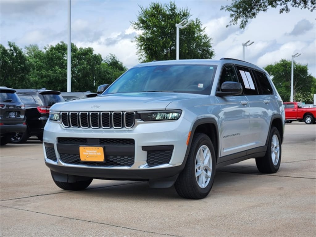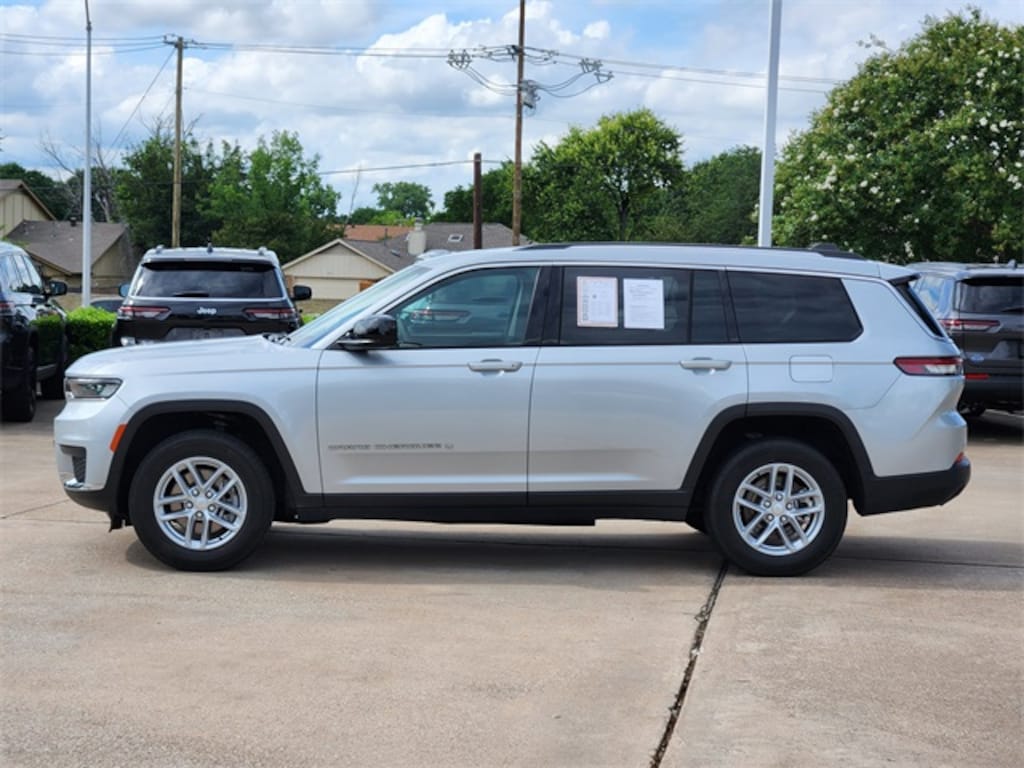 CARFAX One-Owner. Silver Zynith 2023 Jeep Grand Cherokee L Laredo Laredo 8-Speed Automatic 3.6L V6 24V VVT 4WD Quick Order Package 23A Laredo, 2nd Row 60/40 Bench w/Manual Tip/Slide, 2nd Row Seat Center Armrest/Cupholders, 3 Rear Seat Head Restraints, 3.45 Rear Axle Ratio, 3rd row seats: split-bench, 4-Wheel Disc Brakes, 6 Speakers, 7-Passenger Seating, ABS brakes, Air Conditioning, Alloy wheels, Anti-whiplash front head restraints, Automatic temperature control, Brake assist, Bumpers: body-color, Center Rear 3-Point Seat Belt, Cloth Seats, Compass, Delay-off headlights, Driver door bin, Driver vanity mirror, Dual front impact airbags, Dual front side impact airbags, Electronic Stability Control, Emergency communication system, Four wheel independent suspension, Front anti-roll bar, Front Bucket Seats, Front Center Armrest w/Storage, Front dual zone A/C, Front License Plate Bracket, Front reading lights, Fully automatic headlights, Heated door mirrors, Illuminated entry, Knee airbag, Low tire pressure warning, Manual Fold Seatbacks, Molded In Color Black/Gloss Black Roof Rails, Normal Duty Suspension, Occupant sensing airbag, Outside temperature display, Overhead airbag, Overhead console, Panic alarm, ParkView Rear Back-Up Camera, Passenger door bin, Passenger vanity mirror, Power door mirrors, Power driver seat, Power steering, Power windows, Radio data system, Radio: Uconnect 5 w/8.4" Display, Rear air conditioning, Rear anti-roll bar, Rear reading lights, Rear window defroster, Rear window wiper, Reclining 3rd row seat, Remote keyless entry, Security system, Speed control, Speed-Sensitive Wipers, Split folding rear seat, Spoiler, Steering wheel mounted audio controls, Tachometer, Telescoping steering wheel, Tilt steering wheel, Traction control, Trip computer, Variably intermittent wipers, Voltmeter, and Wheels: 18" x 8.0" Fully Painted Aluminum.