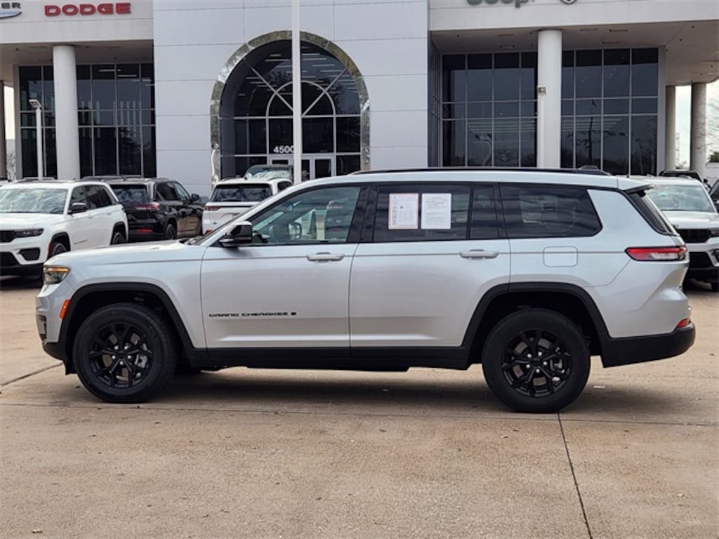 Certified. CARFAX One-Owner. Clean CARFAX. Silver Zynith 2024 Jeep Grand Cherokee L Altitude Altitude 8-Speed Automatic 3.6L V6 24V VVT 4WD Altitude Appearance Package, Quick Order Package 23B Altitude (115V Auxiliary Power Outlet, 3rd Row Charge-Only USB Ports, Black Headliner, Capri Leatherette/Suede Seats, Delete Laredo Badge, Gloss Black Exterior Accents, Heated Front Seats, Heated Steering Wheel, Power Liftgate, Rain Sensitive Windshield Wipers, Remote Start System, Selectable Tire Fill Alert, Wheels: 18" x 8.0" Fully Painted Aluminum 1, and Wireless Charging Pad), FCA US LLC Certified Pre-Owned Certified, 2nd Row 60/40 Bench w/Manual Tip/Slide, 2nd Row Seat Center Armrest/Cupholders, 3 Rear Seat Head Restraints, 3.45 Rear Axle Ratio, 3rd row seats: split-bench, 4-Wheel Disc Brakes, 6 Speakers, 7-Passenger Seating, ABS brakes, Air Conditioning, Alloy wheels, Anti-whiplash front head restraints, Automatic temperature control, Brake assist, Bumpers: body-color, Center Rear 3-Point Seat Belt, Cloth Seats, Compass, Delay-off headlights, Driver door bin, Driver vanity mirror, Dual front impact airbags, Dual front side impact airbags, Electronic Stability Control, Emergency communication system, Four wheel independent suspension, Front anti-roll bar, Front Bucket Seats, Front Center Armrest w/Storage, Front dual zone A/C, Front License Plate Bracket, Front reading lights, Fully automatic headlights, Heated door mirrors, Illuminated entry, Knee airbag, Low tire pressure warning, Manual Fold Seatbacks, Normal Duty Suspension, Occupant sensing airbag, Outside temperature display, Overhead airbag, Overhead console, Panic alarm, ParkView Rear Back-Up Camera, Passenger door bin, Passenger vanity mirror, Power door mirrors, Power driver seat, Power steering, Power windows, Radio data system, Radio: Uconnect 5 w/8.4" Display, Rear air conditioning, Rear anti-roll bar, Rear reading lights, Rear window defroster, Rear window wiper, Reclining 3rd row seat, Remote keyless entry, Security system, Speed control, Speed-Sensitive Wipers, Split folding rear seat, Spoiler, Steering wheel mounted audio controls, Tachometer, Telescoping steering wheel, Tilt steering wheel, Traction control, Trip computer, Variably intermittent wipers, Voltmeter, and Wheels: 18" x 8.0" Fully Painted Aluminum.