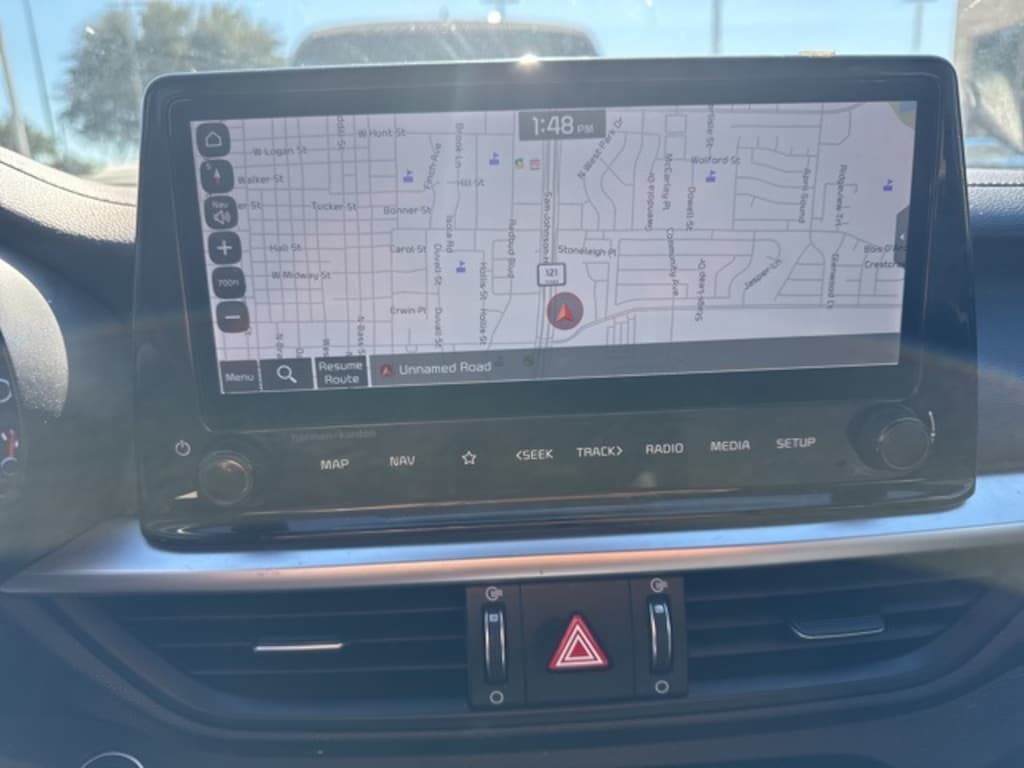 Aurora Black Pearl 2022 Kia Forte GT-Line PREMIUM 2.0L 4-Cylinder MPI FWD CVT **CARFAX ONE OWNER**, **CLEAN CARFAX**, **NAVIGATION**, **MOONROOF**, **KEYLESS ENTRY**, **LEATHER INTERIOR**, **REARVIEW CAMERA**, **BLUETOOTH / HANDS FREE CALLING**, **KIA CERTIFIED AT NO EXTRA CHARGE**, **APPLE CARPLAY AND ANDROID AUTO**, **LOADED!!**, **PREMIUM PACKAGE**, **SMART CRUISE**, ABS brakes, Alloy wheels, Electronic Parking Brake (EPB) w/Auto Hold, Electronic Stability Control, Forward Collision Avoidance-Assist - Cyclist, Front dual zone A/C, GT-Line Premium Package, Heated door mirrors, Highway Driving Assist (HDA), Illuminated entry, Low tire pressure warning, Navigation System, Navigation-Based Smart Cruise Control (NSCC), Overhead LED Front & Rear Reading Lamps, Power Sunroof, Radio: AM/FM/MP3 harman/kardon Premium Audio System, Remote keyless entry, Smart Cruise Control, Traction control, Wireless Charging.