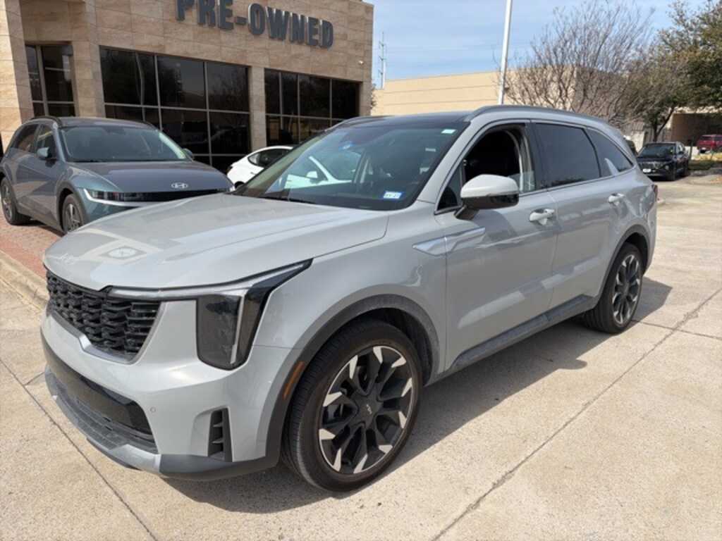 Wolf Gray 2024 Kia Sorento EX 2.5L I4 DGI Turbocharged DOHC 16V LEV3-SULEV30 281hp FWD 8-Speed DCT **CARFAX ONE OWNER**, **CLEAN CARFAX**, **LOCAL TRADE**, **NAVIGATION**, **MOONROOF**, **KEYLESS ENTRY**, **REMOTE START**, **LEATHER INTERIOR**, **REARVIEW CAMERA**, **BLUETOOTH / HANDS FREE CALLING**, **HEATED SEATS**, **PANORAMIC SUNROOF**, **APPLE CARPLAY AND ANDROID AUTO**, **POWER LIFTGATE**, **3RD ROW SEATS**, 3rd row seats: split-bench, ABS brakes, Apple CarPlay & Android Auto, Auto-dimming Rear-View mirror, Exterior Parking Camera Rear, Front anti-roll bar, Front fog lights, Heated door mirrors, Heated Front Bucket Seats, Heated front seats, Knee airbag, LED Interior Lighting, Navigation System, Overhead airbag, Panoramic Power Sunroof w/Power Sunshade, Panoramic Sunroof Package, Power driver seat, Power Liftgate, Power passenger seat, Rear anti-roll bar, Rear side impact airbag, Remote keyless entry, Security system, Smart Key w/ Push Button and Remote Start, Steering wheel mounted audio controls, SynTex Artificial Leather Seat Trim, Wheels: 8.5J x 20" Gloss Black Alloy.
