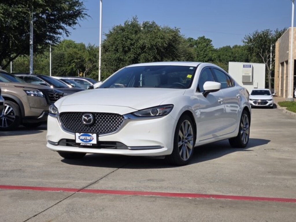 Mazda6 Signature, 4D Sedan, SKYACTIV®-G 2.5L I4 DOHC 16V, 6-Speed Automatic, FWD, Snowflake White Pearl Mica, Parchment Leather, 3-Level Heated Reclining Front Sport Bucket Seats, ABS brakes, AM/FM radio: SiriusXM, AppLink/Apple CarPlay and Android Auto, Auto-dimming door mirrors, Auto-dimming Rear-View mirror, Front anti-roll bar, Garage door transmitter: HomeLink, Heads-Up Display, Heated door mirrors, Heated rear seats, Heated steering wheel, Memory seat, Nappa Leather Seat Trim, Navigation system: MAZDA CONNECT, Overhead airbag, Panic alarm, Power driver seat, Power moonroof, Power passenger seat, Rear anti-roll bar, Remote keyless entry, Steering wheel mounted audio controls, Ventilated Front Seats, Ventilated front seats, Wheels: 19" Alloy w/Brilliant Silver Finish, 11 Speakers, 4-Wheel Disc Brakes, Air Conditioning, Alloy wheels, Anti-whiplash front head restraints, Auto High-beam Headlights, Automatic temperature control, Brake assist, Bumpers: body-color, Delay-off headlights, Driver door bin, Driver vanity mirror, Dual front impact airbags, Dual front side impact airbags, Electronic Stability Control, Emergency communication system: MAZDA CONNECT, Four wheel independent suspension, Front Bucket Seats, Front Center Armrest w/Storage, Front dual zone A/C, Front reading lights, Fully automatic headlights, Genuine wood dashboard insert, Genuine wood door panel insert, Heated front seats, Illuminated entry, Leather Shift Knob, Low tire pressure warning, Occupant sensing airbag, Outside temperature display, Overhead console, Passenger door bin, Passenger vanity mirror, Power door mirrors, Power steering, Power windows, Radio data system, Radio: AM/FM/HD, Rain sensing wipers, Rear reading lights, Rear seat center armrest, Rear window defroster, Speed control, Speed-sensing steering, Split folding rear seat, Spoiler, Tachometer, Telescoping steering wheel, Tilt steering wheel, Traction control, Trip computer, Turn signal indicator mirrors, and Variably intermittent wipers.