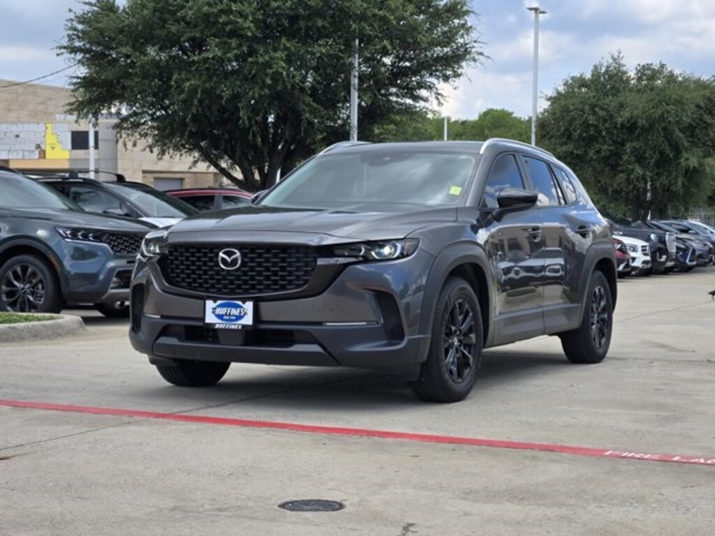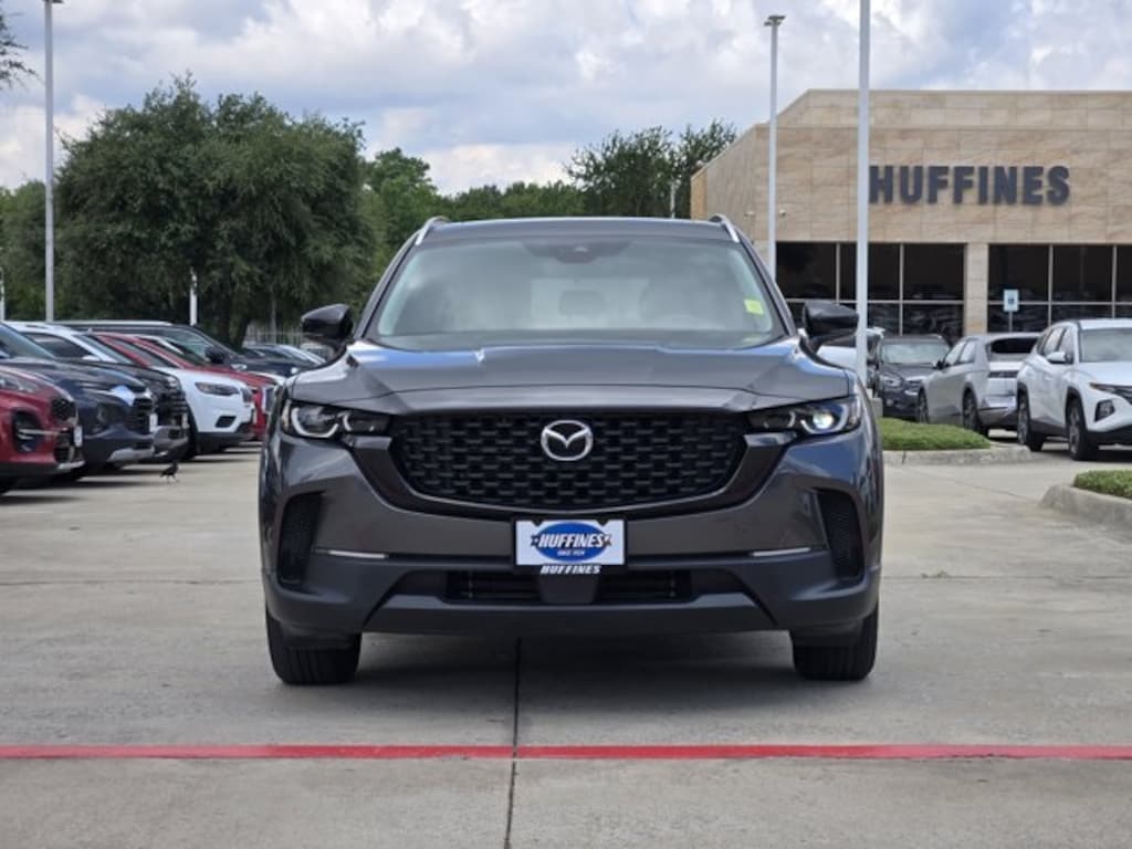 Cargo Package (Cargo Blocks), CX-50 2.5 S Preferred Plus Package, 4D Sport Utility, SKYACTIV® 2.5L 4-Cylinder DOHC 16V, 6-Speed Automatic, AWD, Machine Gray Metallic, Black/Gray w/Half Leatherette Seat Trim, ABS brakes, AppLink/Apple CarPlay and Android Auto, Automatic temperature control, Exterior Parking Camera Rear, Front anti-roll bar, Half Leatherette Seat Trim, Heated door mirrors, Heated Front Bucket Seats, Heated front seats, Knee airbag, Overhead airbag, Panic alarm, Power driver seat, Power Liftgate, Power moonroof, Remote keyless entry, Steering wheel mounted audio controls, Wheels: 17" x 7J Aluminum Alloy, 4-Wheel Disc Brakes, 4.367 Axle Ratio, 8 Speakers, Air Conditioning, Alloy wheels, AM/FM radio, Auto High-beam Headlights, Brake assist, Bumpers: body-color, Carpet Cargo Mat, Delay-off headlights, Driver door bin, Driver vanity mirror, Dual front impact airbags, Dual front side impact airbags, Electronic Stability Control, Emergency communication system: MAZDA CONNECT, Front Bucket Seats, Front Center Armrest w/Storage, Front dual zone A/C, Front reading lights, Front wheel independent suspension, Fully automatic headlights, Illuminated entry, Leather Shift Knob, Leather steering wheel, Low tire pressure warning, Machine Gray Metallic Paint Charge, Occupant sensing airbag, Outside temperature display, Overhead console, Passenger door bin, Passenger vanity mirror, Power door mirrors, Power steering, Power windows, Radio data system, Radio: AM/FM/HD Audio System, Rain sensing wipers, Rear seat center armrest, Rear window defroster, Rear window wiper, Speed control, Speed-sensing steering, Split folding rear seat, Spoiler, Tachometer, Telescoping steering wheel, Tilt steering wheel, Traction control, Trip computer, Turn signal indicator mirrors, and Variably intermittent wipers.
