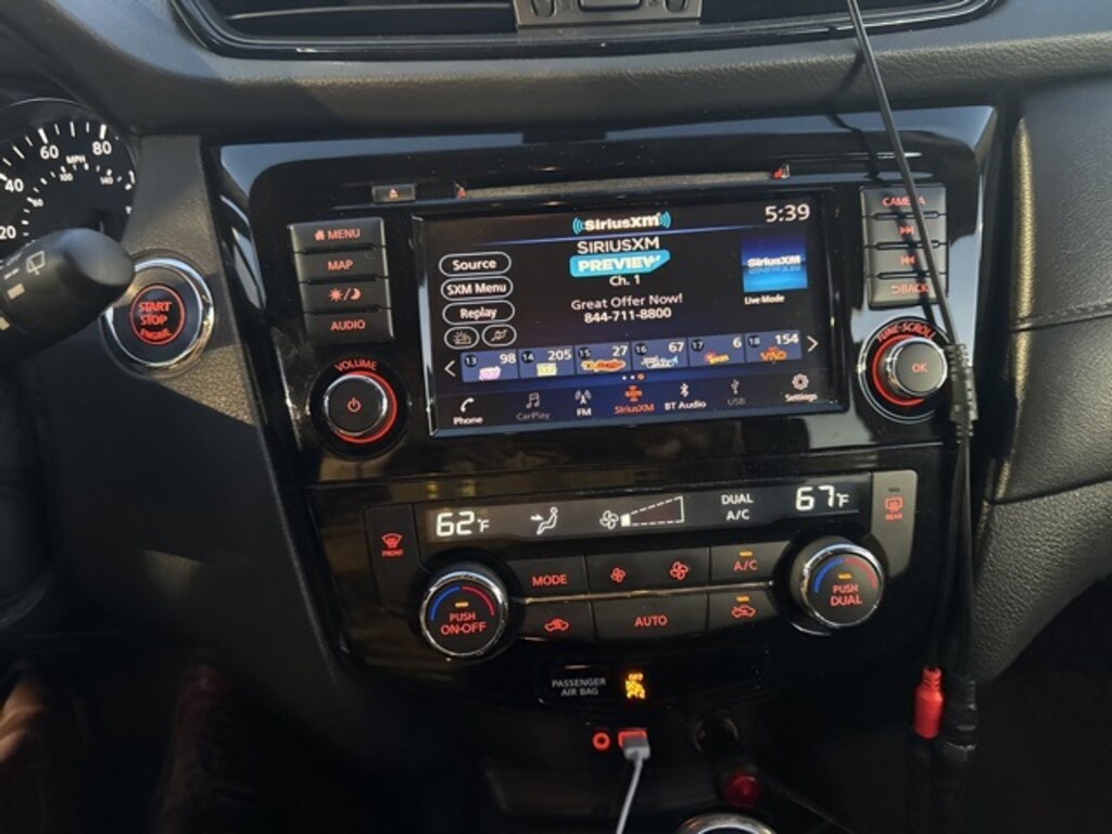 Midnight Edition (Black Cross Bars, Black Front & Rear Fascia Accents, Black Outside Mirror Caps, Black Rear License Plate Finisher, Black Rogue Rear Emblem, Black Roof Rails, Black Splash Guards, Black SV & Black AWD Rear Emblems, Black V-Motion Grille, Illuminated Kickplates, Midnight Edition Badge, and Wheels: 17" Black Alloy), Premium Package (Heated Leather-Wrapped Steering Wheel, Intelligent Aroundview Monitor (I-AVM), Intelligent Cruise Control, Memory Driver Seat & Outside Mirrors, and Radio: AM/FM/CD/AUX NissanConnect w/Navigation), 17" Aluminum Alloy Wheels, 4-Wheel Disc Brakes, 6 Speakers, 6.386 Axle Ratio, ABS brakes, Air Conditioning, Alloy wheels, AM/FM radio: SiriusXM, Anti-whiplash front head restraints, Apple CarPlay/Android Auto, Automatic temperature control, Blind Spot Warning, Brake assist, Bumpers: body-color, CD player, Cloth Seat Trim, Delay-off headlights, Driver door bin, Driver vanity mirror, Dual front impact airbags, Dual front side impact airbags, Electronic Stability Control, First Aid Kit, Fog Lamps, Four wheel independent suspension, Front anti-roll bar, Front Bucket Seats, Front Center Armrest w/Storage, Front dual zone A/C, Front reading lights, Fully automatic headlights, Heated door mirrors, Heated front seats, Illuminated entry, Leather Shift Knob, Low tire pressure warning, March SOP Spec, Midnight Edition Carpeted Floor Mats, Occupant sensing airbag, Outside temperature display, Overhead airbag, Overhead console, Panic alarm, Passenger door bin, Passenger vanity mirror, Power door mirrors, Power driver seat, Power Liftgate, Power steering, Power windows, Quick Comfort Heated Front Bucket Seats, Radio data system, Radio: AM/FM/CD/AUX, Rear anti-roll bar, Rear seat center armrest, Rear window defroster, Rear window wiper, Remote keyless entry, Roof rack: rails only, Security system, Speed control, Speed-sensing steering, Split folding rear seat, Spoiler, Steering wheel mounted audio controls, Tachometer, Telescoping steering wheel, Tilt steering wheel, Traction control, Trip computer, Turn signal indicator mirrors, and Variably intermittent wipers.