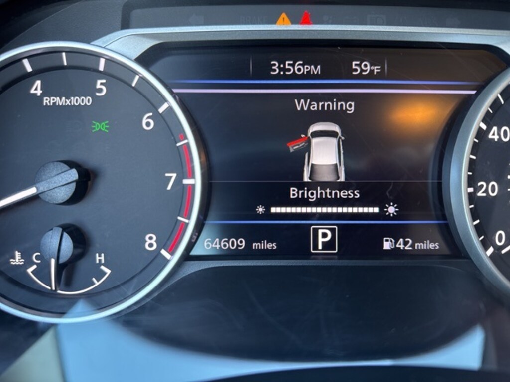 18" Alloy Wheels, 4-Wheel Disc Brakes, 6 Speakers, ABS brakes, Air Conditioning, Alloy wheels, AM/FM radio: SiriusXM, Auto High-beam Headlights, Automatic temperature control, Blind Spot Warning, Brake assist, Bumpers: body-color, Carpeted Floor Mats w/Trunk Mat, Clear Rear Bumper Protector, Delay-off headlights, Door Sill Plates, Driver door bin, Driver vanity mirror, Dual front impact airbags, Dual front side impact airbags, Electronic Stability Control, Four wheel independent suspension, Front anti-roll bar, Front Bucket Seats, Front Center Armrest, Front dual zone A/C, Front fog lights, Front reading lights, Fully automatic headlights, Heated door mirrors, Illuminated entry, Knee airbag, Leather Shift Knob, Low tire pressure warning, NissanConnect featuring Apple CarPlay and Android Auto, Occupant sensing airbag, Outside temperature display, Overhead airbag, Overhead console, Panic alarm, Passenger door bin, Passenger vanity mirror, Power door mirrors, Power steering, Power windows, Radio data system, Radio: AM/FM w/RDS/MP3/Aux-In, Rear anti-roll bar, Rear Parking Sensors, Rear seat center armrest, Rear side impact airbag, Rear window defroster, Remote keyless entry, Security system, Speed control, Speed-sensing steering, Split folding rear seat, Spoiler, Sport Cloth Seat Trim, Steering wheel mounted audio controls, Tachometer, Telescoping steering wheel, Tilt steering wheel, Traction control, Trip computer, Turn signal indicator mirrors, and Variably intermittent wipers.