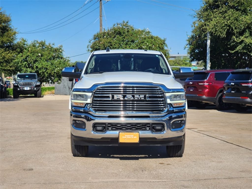 CARFAX One-Owner. Clean CARFAX. Bright White Clearcoat 2022 Ram 2500 Laramie Laramie 8-Speed Automatic 6.4L V8 4WD Quick Order Package 2GH Laramie, 10 Speakers, 115V Auxiliary Rear Power Outlet, 2 Way Rear Headrest Seat, 3.73 Axle Ratio, 4 Way Front Headrests, 4-Wheel Disc Brakes, 4G LTE Wi-Fi Hot Spot, 8.4" Touchscreen Display, ABS brakes, Active Noise Control System, Adjustable pedals, Air Conditioning, Alexa Built-In, All R1 High Radios, All Radio Equipped Vehicles, Alloy wheels, AM/FM radio: SiriusXM, Apple CarPlay, Apple CarPlay/Android Auto, Auto-dimming Rear-View mirror, Automatic temperature control, Bluetooth Handsfree Phone & Audio, Brake assist, Bumpers: chrome, Chrome Exterior Mirrors, Compass, Connected Travel & Traffic Services, Connectivity - US/Canada, Delay-off headlights, Disassociated Touchscreen Display, Driver door bin, Driver vanity mirror, Dual front impact airbags, Dual front side impact airbags, Electronic Stability Control, Electronically Controlled Throttle, Exterior Mirrors Courtesy Lamps, Exterior Mirrors w/Heating Element, Exterior Mirrors w/Supplemental Signals, For Details, Visit DriveUconnect.com, For More Info, Call 800-643-2112, Front anti-roll bar, Front Center Armrest w/Storage, Front dual zone A/C, Front fog lights, Front License Plate Bracket, Front reading lights, Front Seat Back Map Pockets, Fully automatic headlights, Garage door transmitter, Global Telematics Box Module (TBM), Google Android Auto, GPS Antenna Input, GPS Navigation, HD Radio, Heated door mirrors, Heated Front Seats, Heated front seats, Heated Steering Wheel, Heated steering wheel, Illuminated entry, Integrated Center Stack Radio, Integrated Voice Command w/Bluetooth, Leather steering wheel, Leather Trim 40/20/40 Bench Seat, Low tire pressure warning, Manufacturer's Statement of Origin, Mirror Running Lights, Occupant sensing airbag, Off-Road Information Pages, Outside temperature display, Overhead airbag, Overhead console, Panic alarm, ParkView Rear Back-Up Camera, Passenger door bin, Passenger vanity mirror, Power 2-Way Driver Lumbar Adjust, Power 2-Way Passenger Lumbar Adjust, Power Adjust 8-Way Driver Seat, Power Adjust 8-Way Front Passenger Seat, Power door mirrors, Power driver seat, Power Folding Mirrors, Power passenger seat, Power steering, Power windows, Radio data system, Radio: Uconnect 5 Nav w/8.4" Display, Radio: Uconnect 5 W w/8.4" Display, Rear 60/40 Folding Seat, Rear anti-roll bar, Rear reading lights, Rear seat center armrest, Rear step bumper, Rear window defroster, Remote keyless entry, Security system, Selectable Tire Fill Alert, SiriusXM Radio Service, SiriusXM Satellite Radio, SiriusXM w/360L, Speed control, Split folding rear seat, Steering wheel mounted audio controls, Tachometer, Tilt steering wheel, Tip Start, Tow Hooks, Traction control, Trailer Tow Mirrors, Trip computer, Turn signal indicator mirrors, Variably intermittent wipers, Vendor Painted Cargo Box, Vendor Painted Cargo Box Tracking, Voltmeter, and Wheels: 18" x 8.0" Polished AluminuM.